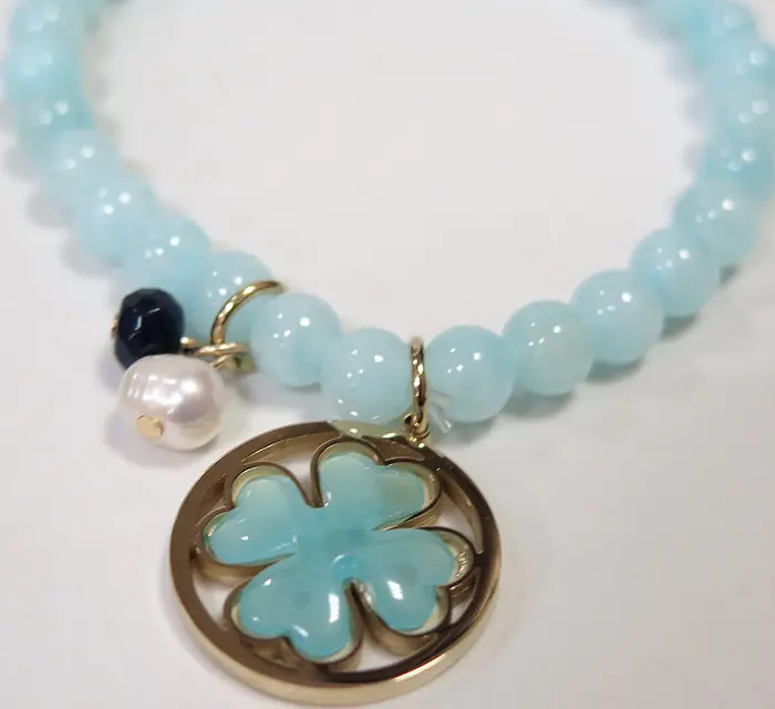 Натуральный камень, ювелирная сталь L316 с напылением 14К по технологии IPG